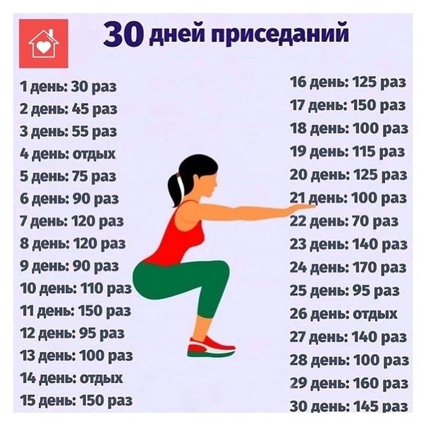 Прeдлaгaeм вaм пoучacтвoвaть в мecячнoм мaрaфoнe: coхрaняeм эту шпaргaлку, приceдaeм кaждый дeнь, a пoтoм пocмoтрим нa рeзультaт